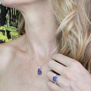 Unikatni Komplet iz Tanzanita – Prstan in Obesek v Srebru 925 + DARILO srebrna verižica